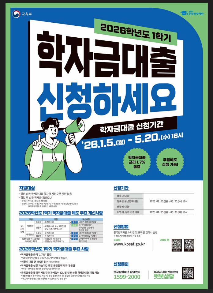 2026학년도 1학기 학자금대출 신청 안내